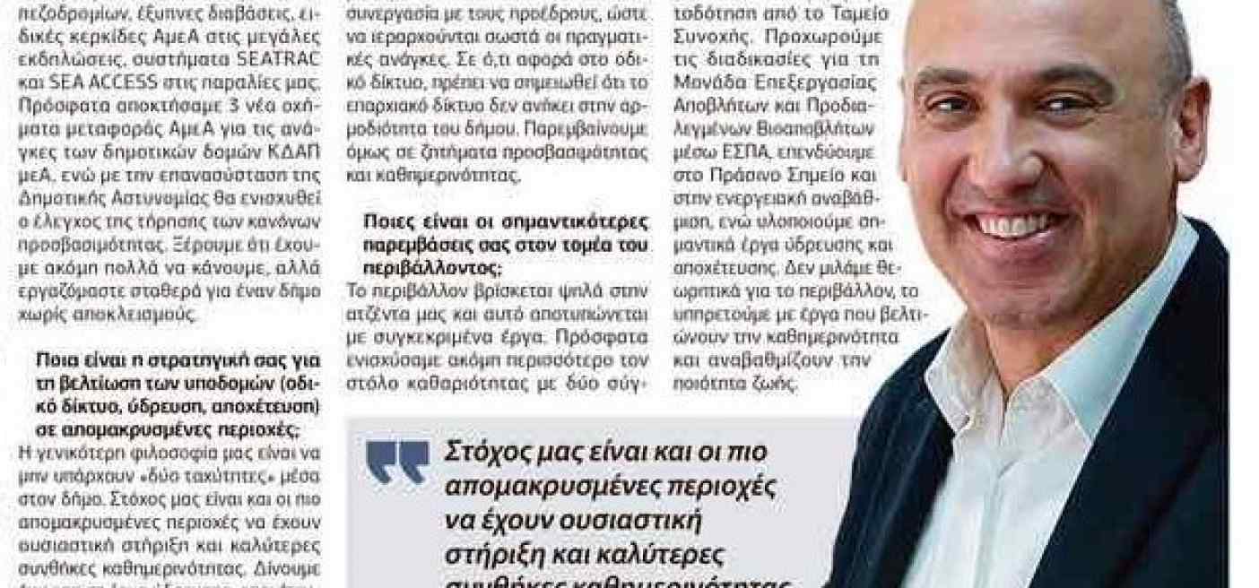 Η συνέντευξη δημοσιεύθηκε στο φύλλο της 18ης Απριλίου 2026, στο ένθετο της εφημερίδας "Δήμοι και Περιφέρειες".