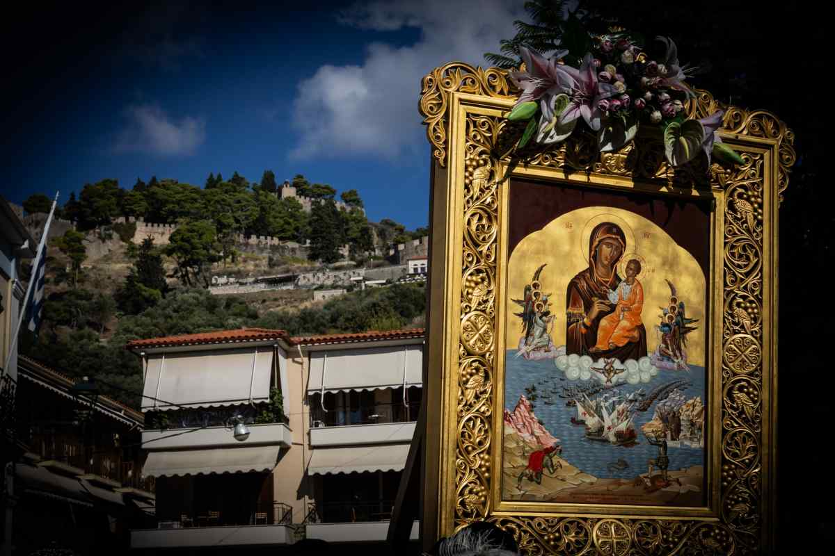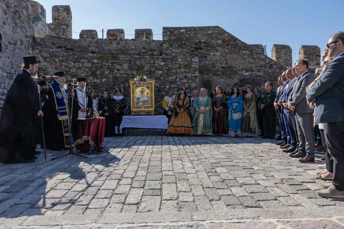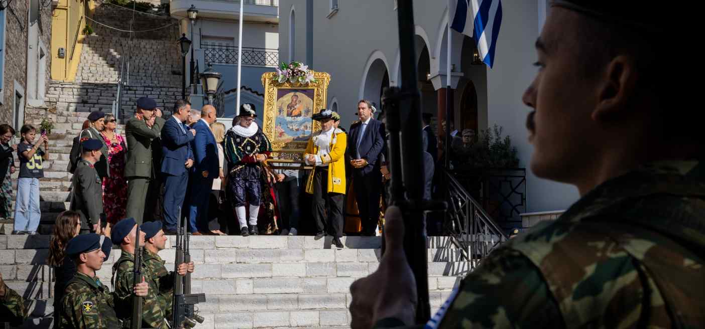 Μετά τη Δοξολογία, η πομπή της ιερής εικόνας κατευθύνθηκε προς το Ενετικό Λιμάνι, συνοδεία στρατιωτικού αγήματος, της Παπαχαραλαμπείου Δημοτικής Φιλαρμονικής Ναυπάκτου και εθελοντών, όπου τελέστηκε Επιμνημόσυνη Δέηση. Ακολούθως, πραγματοποιήθηκε τελετή ρίψης στεφάνων στη θάλασσα, ως ένδειξη τιμής και μνήμης προς τους πεσόντες της ιστορικής Ναυμαχίας του 1571.
