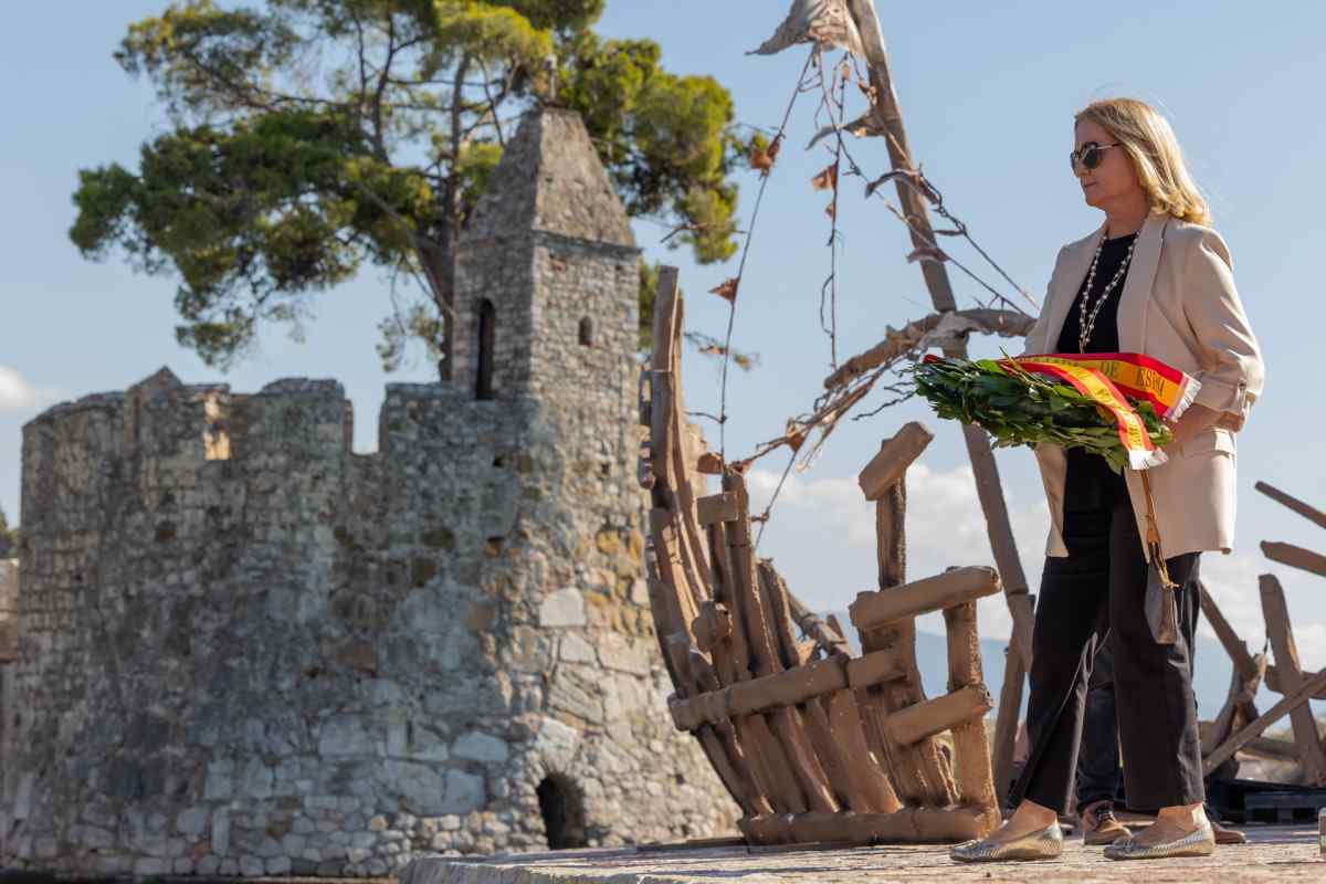 Στεφάνια ρίφθηκαν από τον Δήμαρχο Ναυπακτίας Βασίλη Γκίζα, την αν.Επικεφαλής της Ισπανικής Πρεσβείας στην Αθήνα Maria Reyes Fernandez Bulnes, τον Διοικητή της 4ης Μεραρχίας Πεζικού Αλέξανδρο Χατζηαλεξανδρή, τον Λιμενάρχη Μεσολογγίου Νεκτάριο Μελιάδη, τον Διοικητή του Αστυνομικού Τμήματος Ναυπάκτου Βασίλη Πολυγένη, τον Διοικητή της Πυροσβεστικής Υπηρεσίας Ναυπάκτου Αθανάσιο Χριστοβασίλη και τον εκπρόσωπο του Δικτύου «Δρόμοι του Lepanto» Χρήστο Σαλαμούρα.