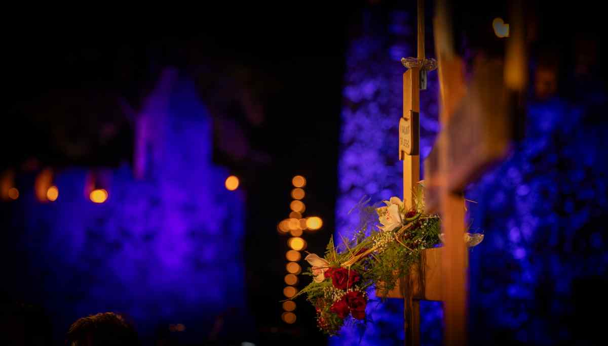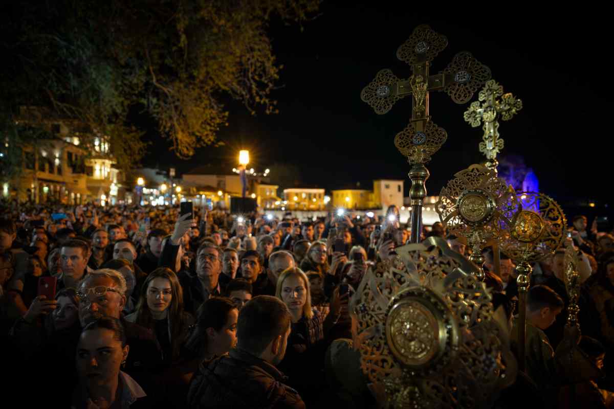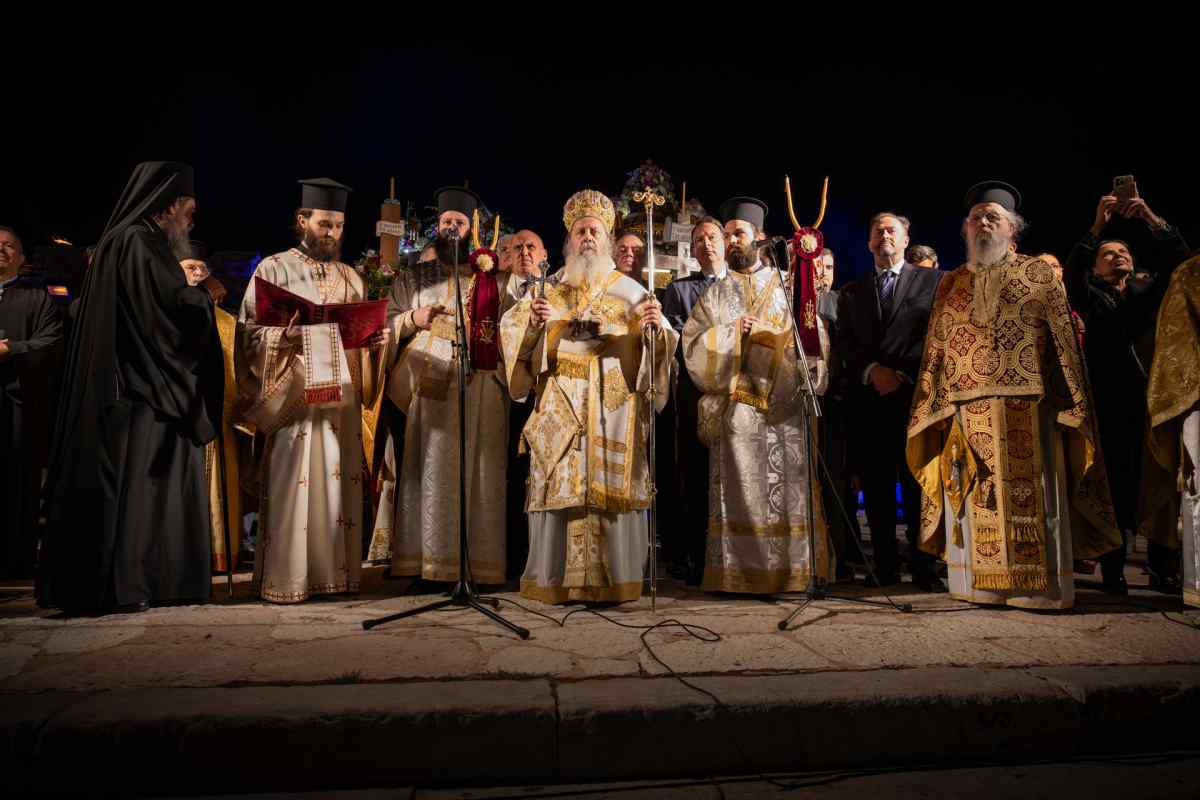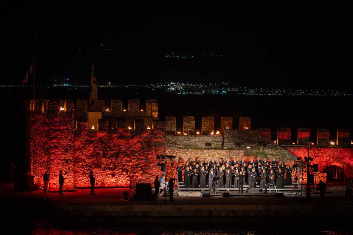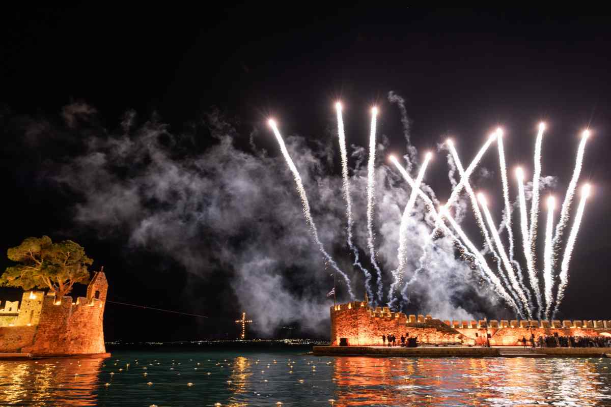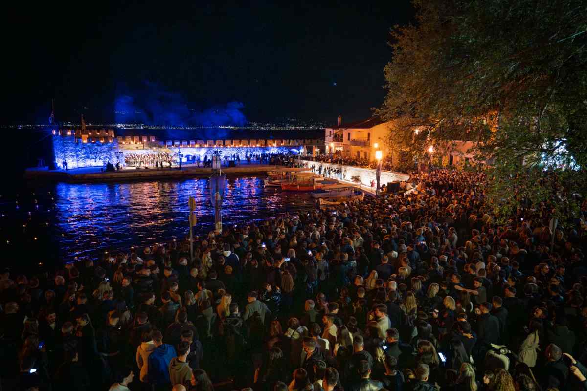 Χιλιάδες επισκέπτες κατέκλυσαν τη Ναύπακτο το βράδυ της Μεγάλης Παρασκευής, συμμετέχοντας σε ένα από τα πιο ιδιαίτερα τελετουργικά της Περιφοράς των Επιταφίων. Το Ενετικό Λιμάνι μεταμορφώθηκε σε ένα σκηνικό σπάνιας ομορφιάς και συγκίνησης, με τις πολεμίστρες να φωτίζονται από δεκάδες αναμμένες δάδες και τον φλεγόμενο σταυρό στην είσοδο να δημιουργεί μία εικόνα που δύσκολα ξεχνιέται.