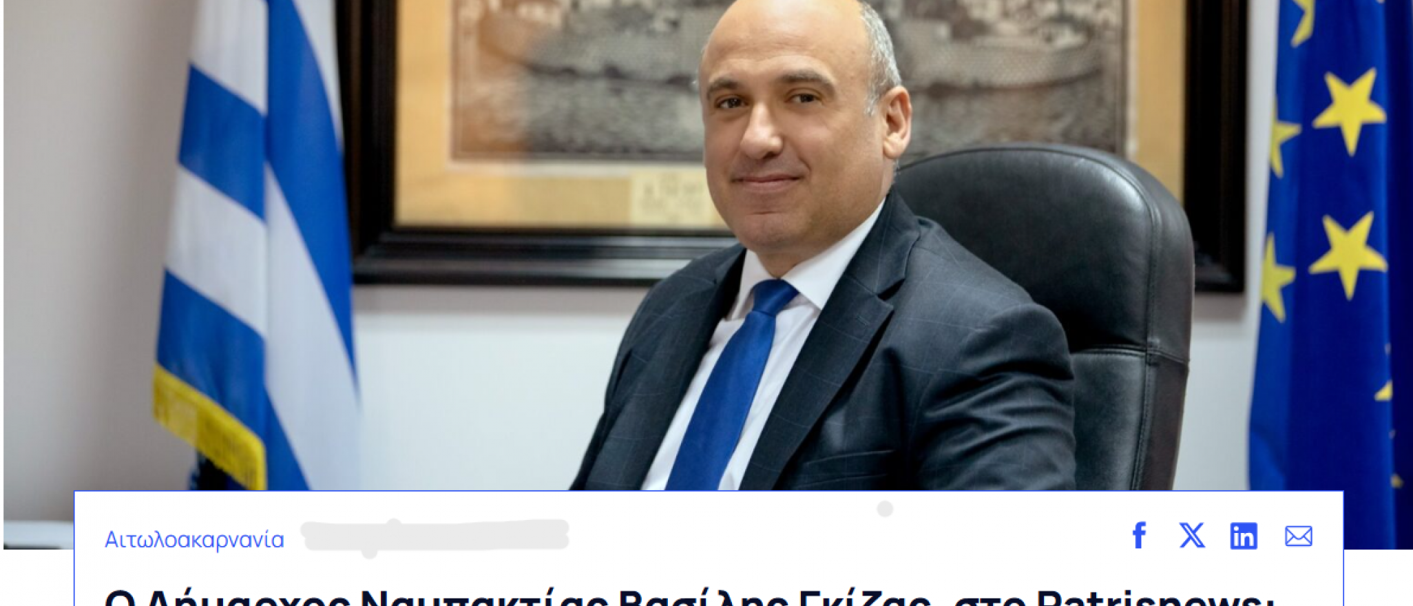 Σε μια περίοδο όπου ο Δήμος Ναυπακτίας περνά από τον σχεδιασμό στην πράξη, ο Δήμαρχος κ.Βασίλης Γκίζας ανοίγει τα χαρτιά του στο Patrisnewsκαι την Κική Κολοβέρου, περιγράφοντας την πορεία της νέας του θητείας.