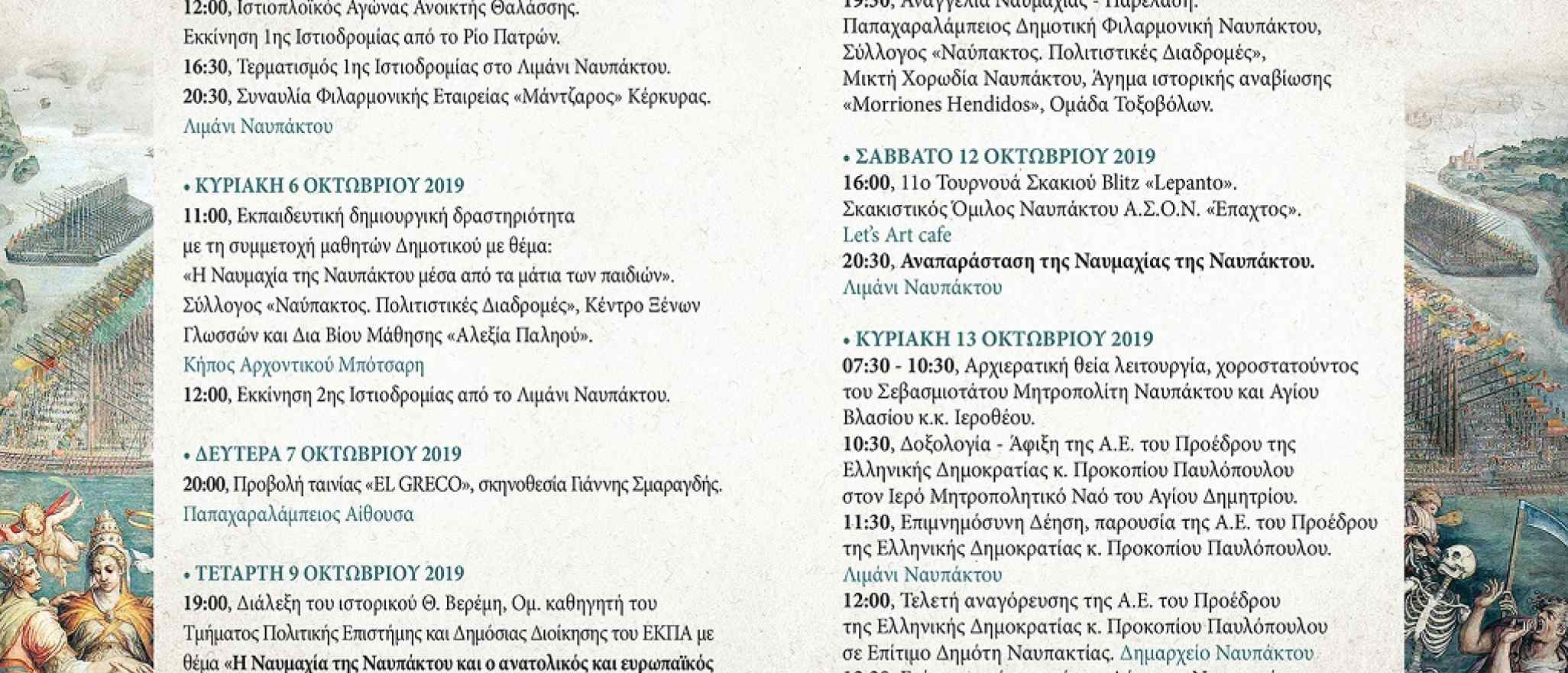 ΠΡΟΓΡΑΜΜΑ ΕΚΔΗΛΩΣΕΩΝ ΤΗΣ ΑΝΑΠΑΡΑΣΤΑΣΗΣ ΤΗΣ ΝΑΥΜΑΧΙΑΣ ΝΑΥΠΑΚΤΟΥ 2019
